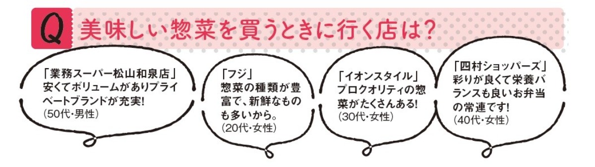 と:みなさん行きつけのスーパーの惣菜コーナーは、特にしっかりチェックしているみたい。夕方以降の値引きシールを狙う人も多数。惣菜に力を入れているスーパーも増えています!