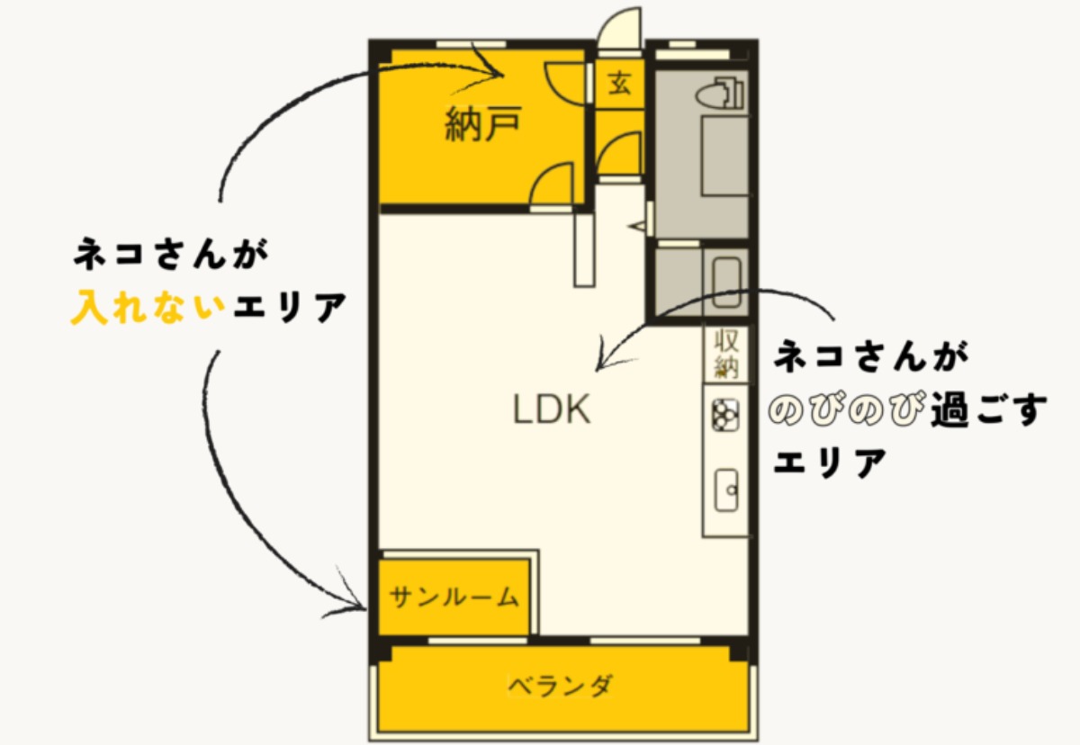 そこで、成松さんはネコが入れるエリアと入れないエリアを分けることを提案しました。