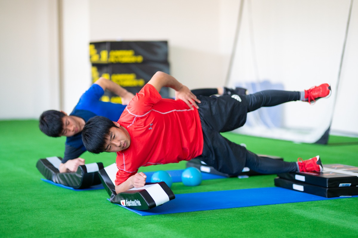 インナーマッスルの強化とアウター強化でキレのある動きに繋げていき、授業の中では体幹部・上半身・下半身とまんべんなくトレーニングを行っていくので、バランスよく鍛えられるそう!