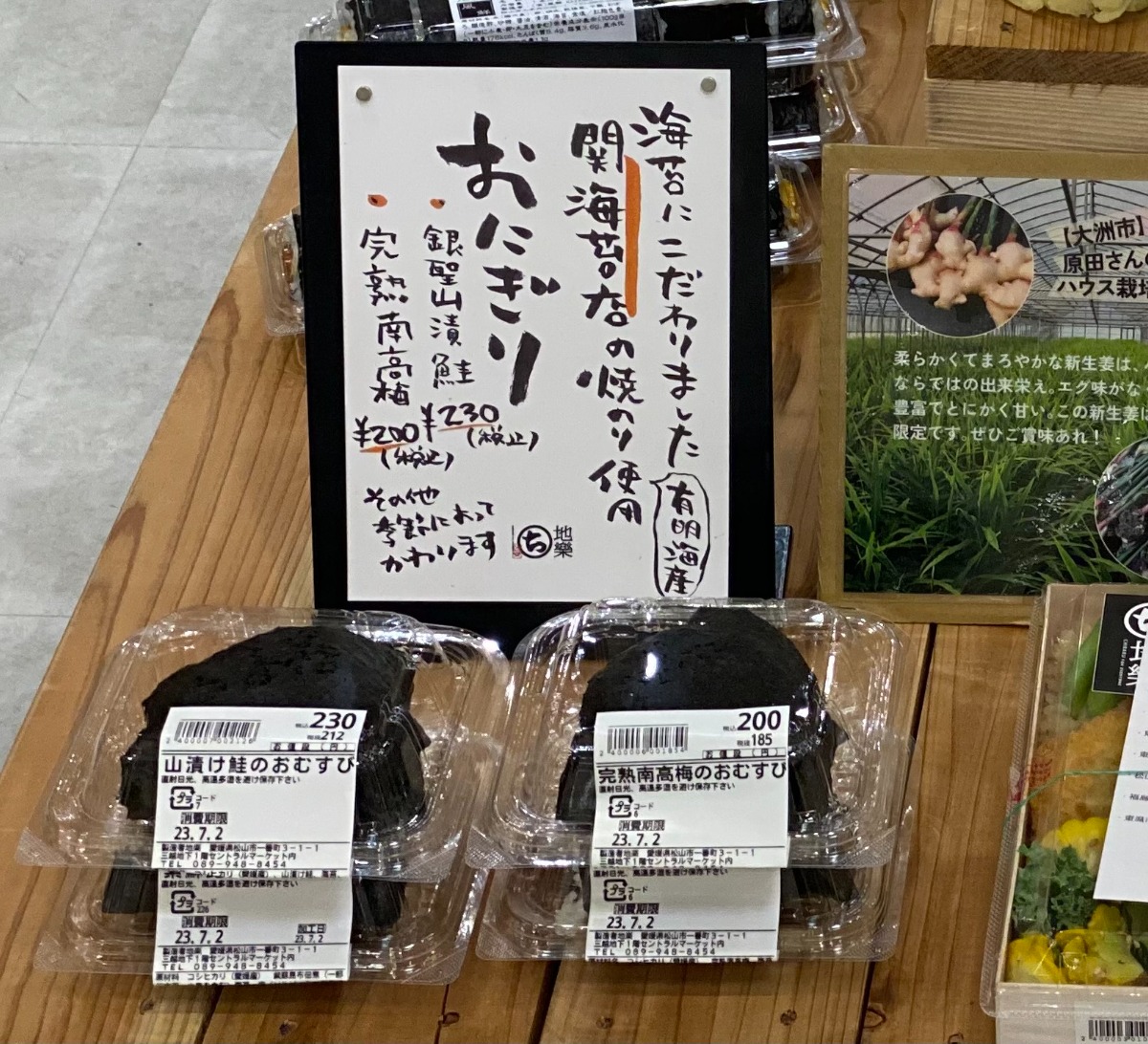 自然派スーパーの「福島屋」に指導してもらい、材料・レシピも全く同じものを提供中。有明海の海苔や完熟南高梅、「福島屋」オリジナルの無添加ネーズなどこだわりの材料で作っているそう。
