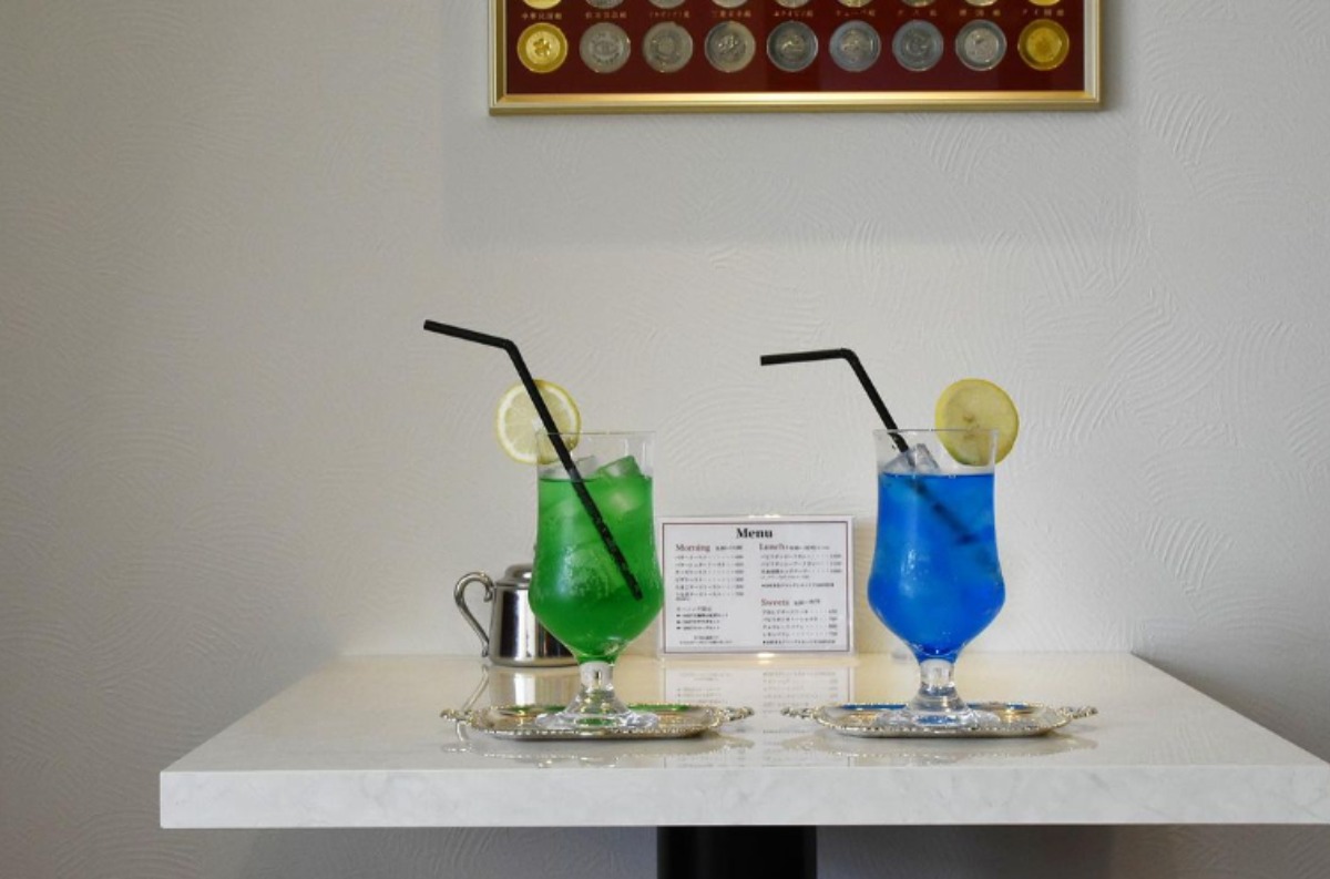 「宇宙レアチーズケーキ」を「メロンソーダ・ブルーソーダ」と一緒に楽しむのも◎。