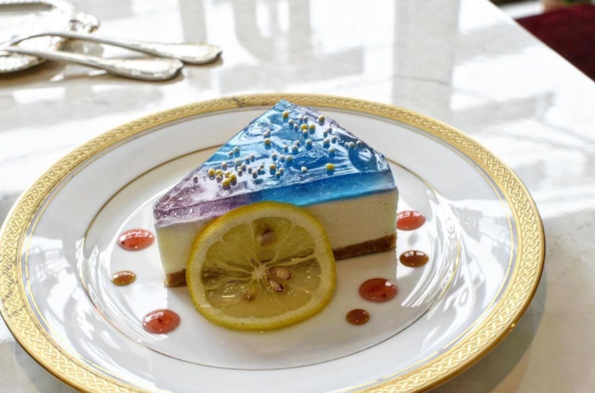 史上初の月面着陸を果たしたアポロ11号をイメージして作られたもので、鮮やかなブルーのグラデーションゼリーが写真映え!ゼリーの上のトッピングもなんだか宇宙みたいですよね。口溶けなめらかで濃厚なレアチーズケーキに、柑橘果汁の風味がきいたさっぱりとしたゼリーが相性抜群の逸品。