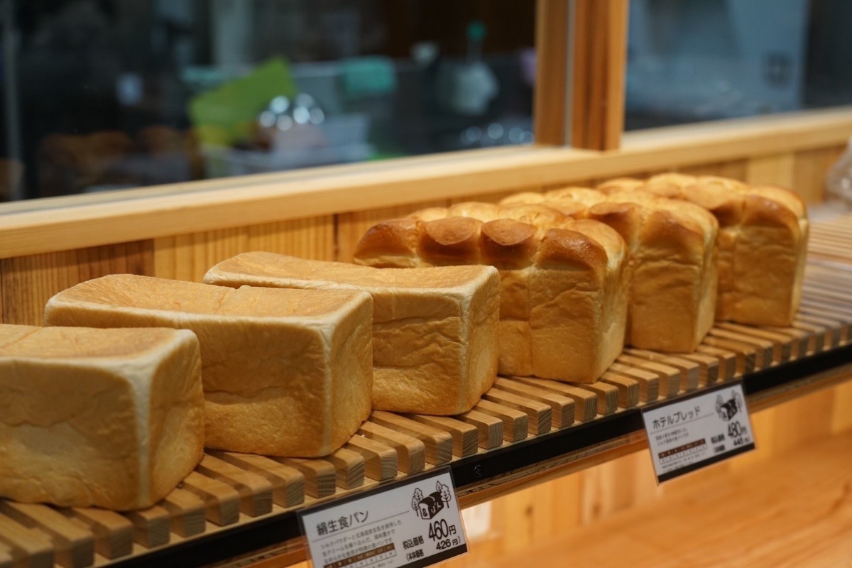 飛ぶように売れると評判の食パンは「ホテルブレッド」と「絹生食パン」の2種の味を用意。また、周りにあられが付いた「こだわりあんぱん」など個性的なメニューも揃う。
