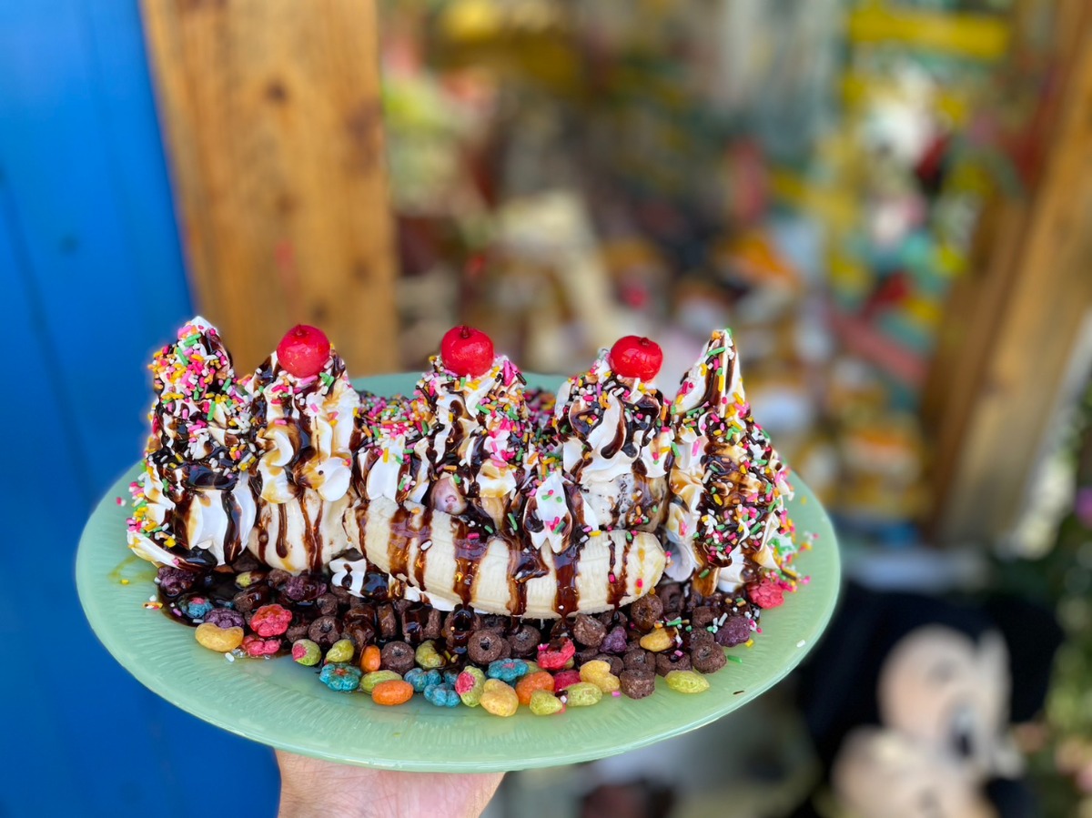アメリカの伝統的なアイスクリームのデザート「バナナスプリット」。