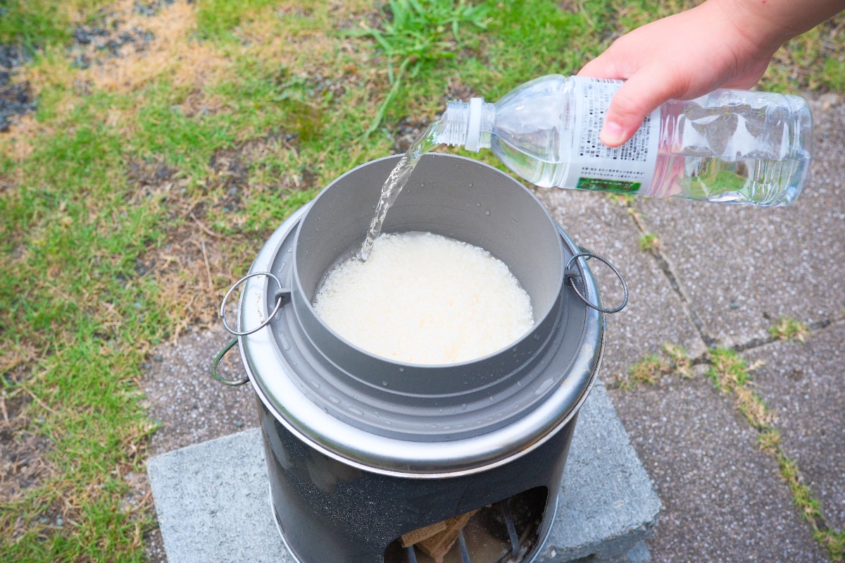 自分たちで、かまどと羽釜を使ってごはんを炊くことができます。