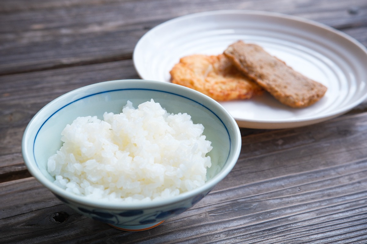 体験セットのお茶碗にご飯をよそい、実食の時間です。
