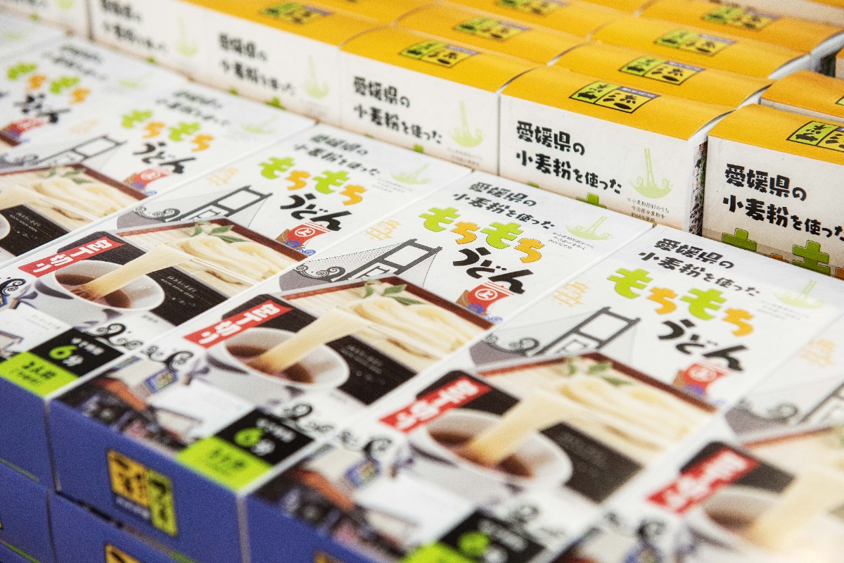 今治産小麦を66%使用したさいさいオリジナルうどん。6分で茹で上がる調理しやすい細麺。