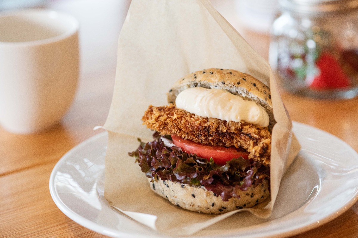 今治産の鯛を使った、食べ応えたっぷりの鯛カツバーガー。数量限定なので早いもの勝ち!