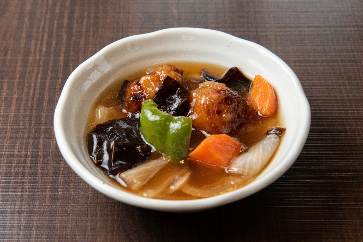 1ヵ月で約3000個売れる酢豚は、肉も野菜も今治産。さっぱり食べられると女性人気が高いです。