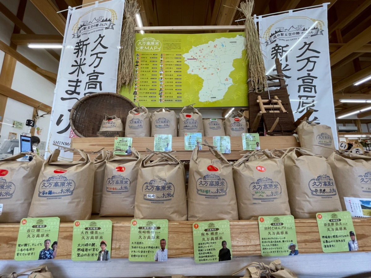 農家さんごとのこだわりが書かれたPOPを見ながら、好みのお米を選ぶことができます!
