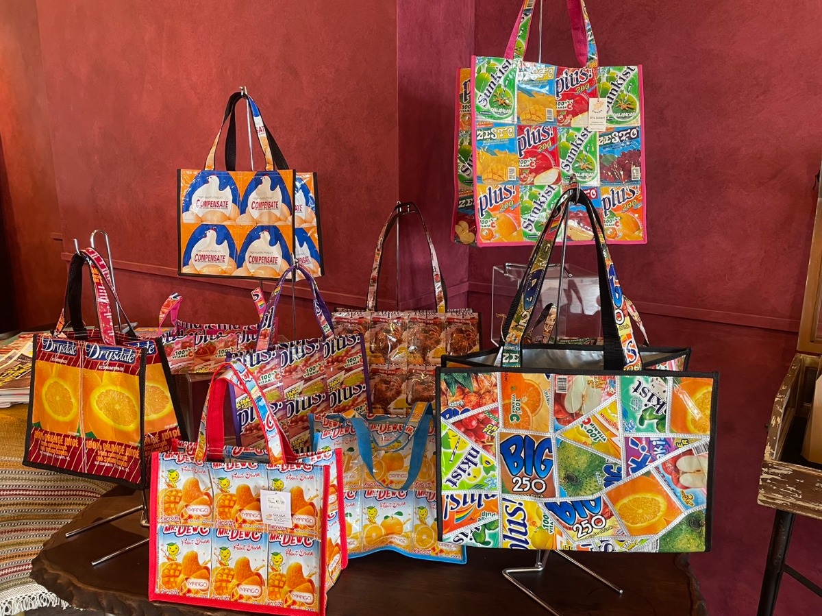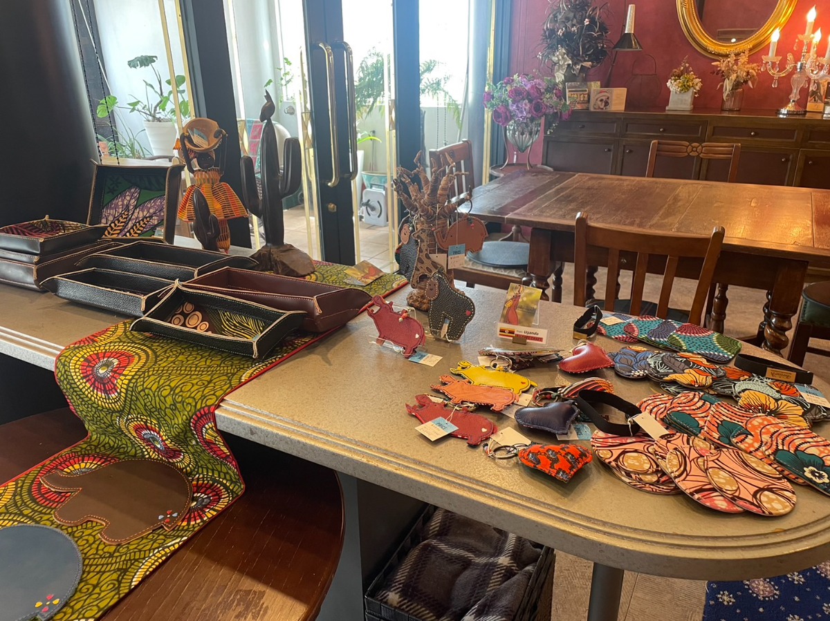 入口付近には、バッグや革製品の小物がずらり。まるで海外のカフェのような気分を味わえます。看板犬ラムちゃんは、店内奥にいることが多いのでぜひ覗いてみてくださいね。