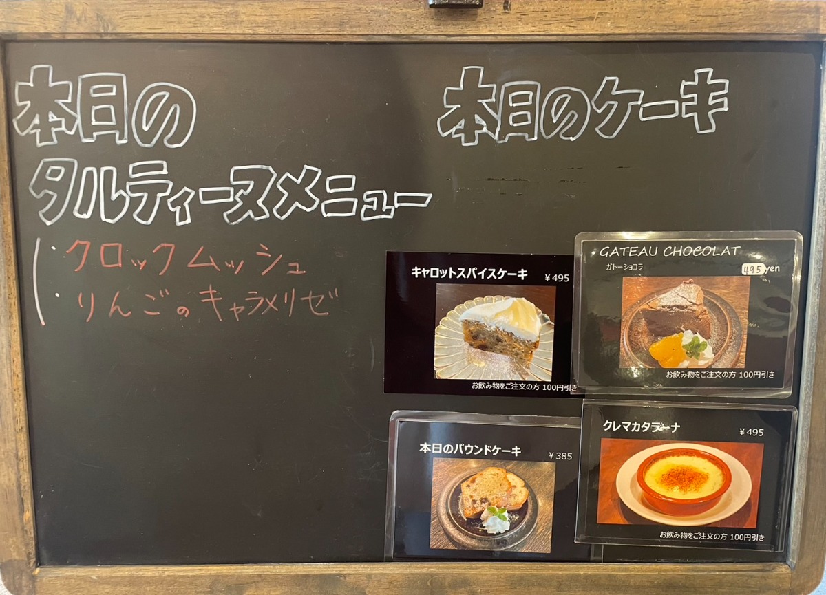 「タルティーヌ」は、定期的にメニューが変わっているので、いつ行っても飽きません♪ ケーキは、明るい人柄が魅力的なオーナーが全て手作りしていますよ。