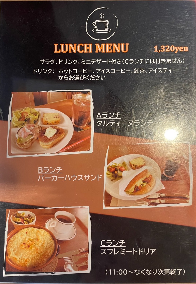 ランチメニューは、「タルティーヌランチ」・「パーカーハウスサンド」・「スフレミートドリア」の3種類があり、その中でも最近人気なのが「スフレミートドリア」。