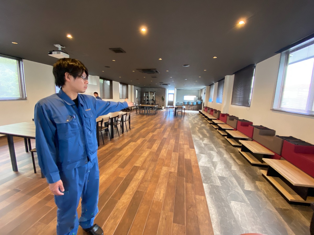久留島さん:主に会議とか、懇親会に使われています。このあいだは健康診断の会場になっていました。スクリーンと音響設備もあるので上映会も出来ます。筋トレ設備もあるので、体を鍛えている社員も多いです。