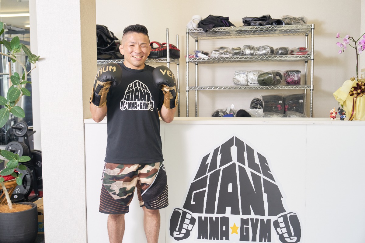 総合格闘技MMA「第2代DEEPストロー級チャンピオン」の越智代表トレーナーが、初心者から経験者まで、それぞれのレベルに合わせて分かりやすく丁寧に指導してくれる「Little Giant Gym」。