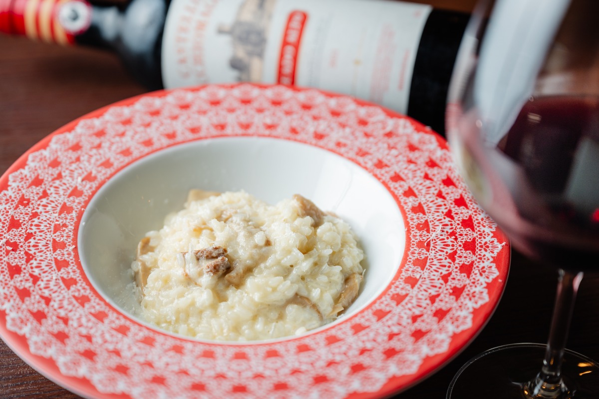 ブドウの品種「サンジョベーゼ」100%、キノコの香りを邪魔しない滑らかなタンニンで余韻も楽しめるワイン。