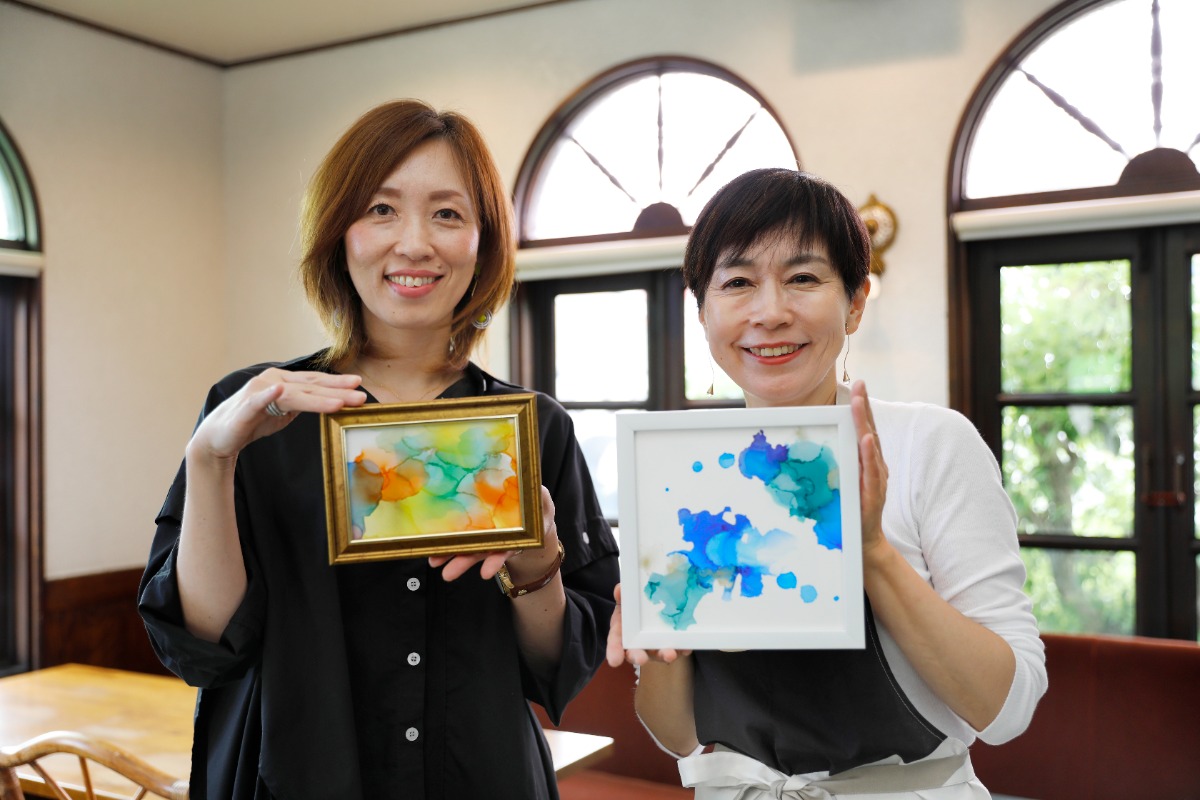 アルコールインクアート講師の萩森美菜先生は「大好きな空のグラデーションを表現したい」という想いからアートの世界へ。