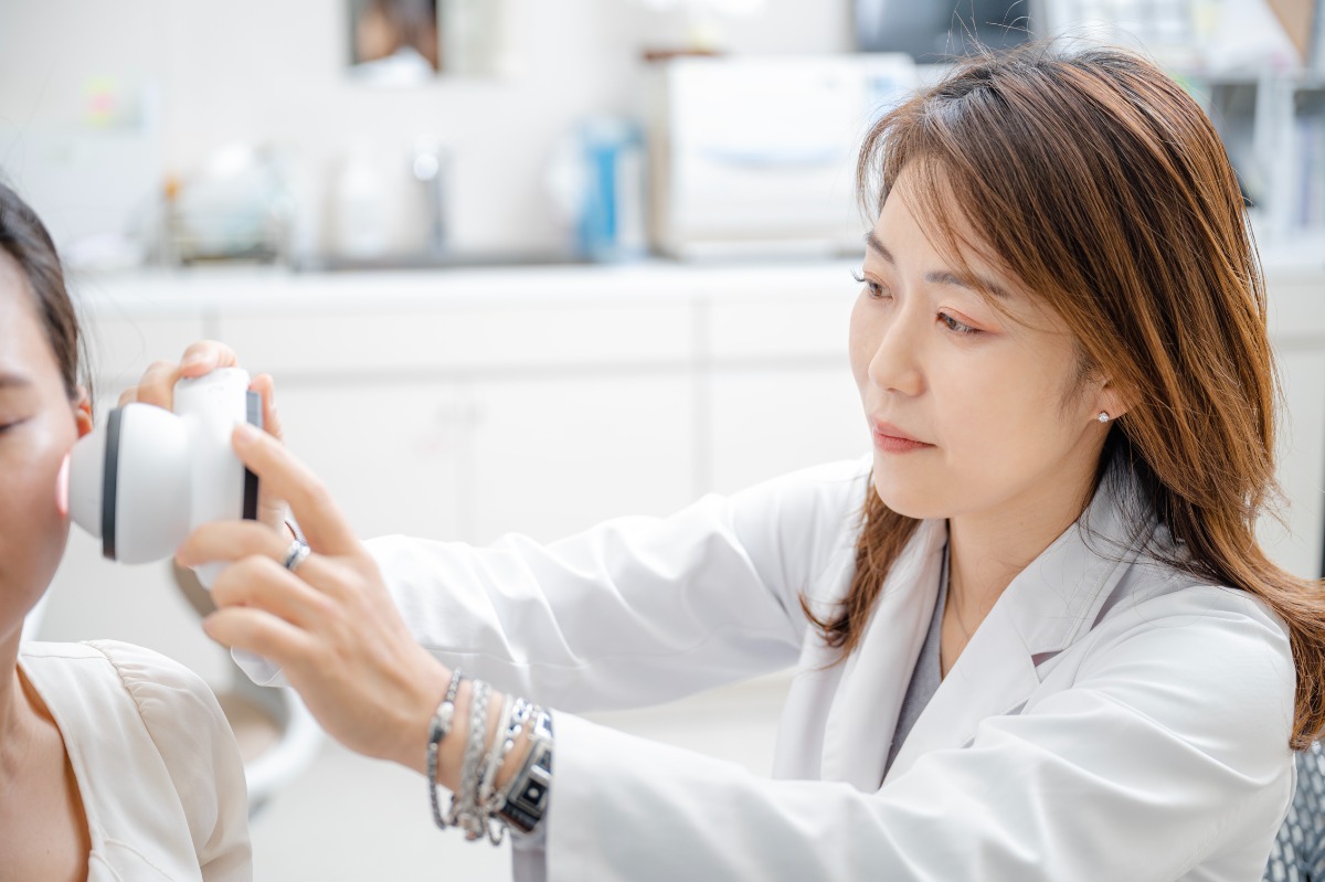 まずは問診と視診をしっかり行いますが、より正確な診断をするために「レビュー」という解析機械と、特殊な拡大鏡である「ダーモスコピー」を用いてしみの種類を見極めます。一見しみに見える悪性腫瘍も見逃さないように、細心の注意を払っています。診断結果と患者さんの希望に応じて、治療方法をご提案します。