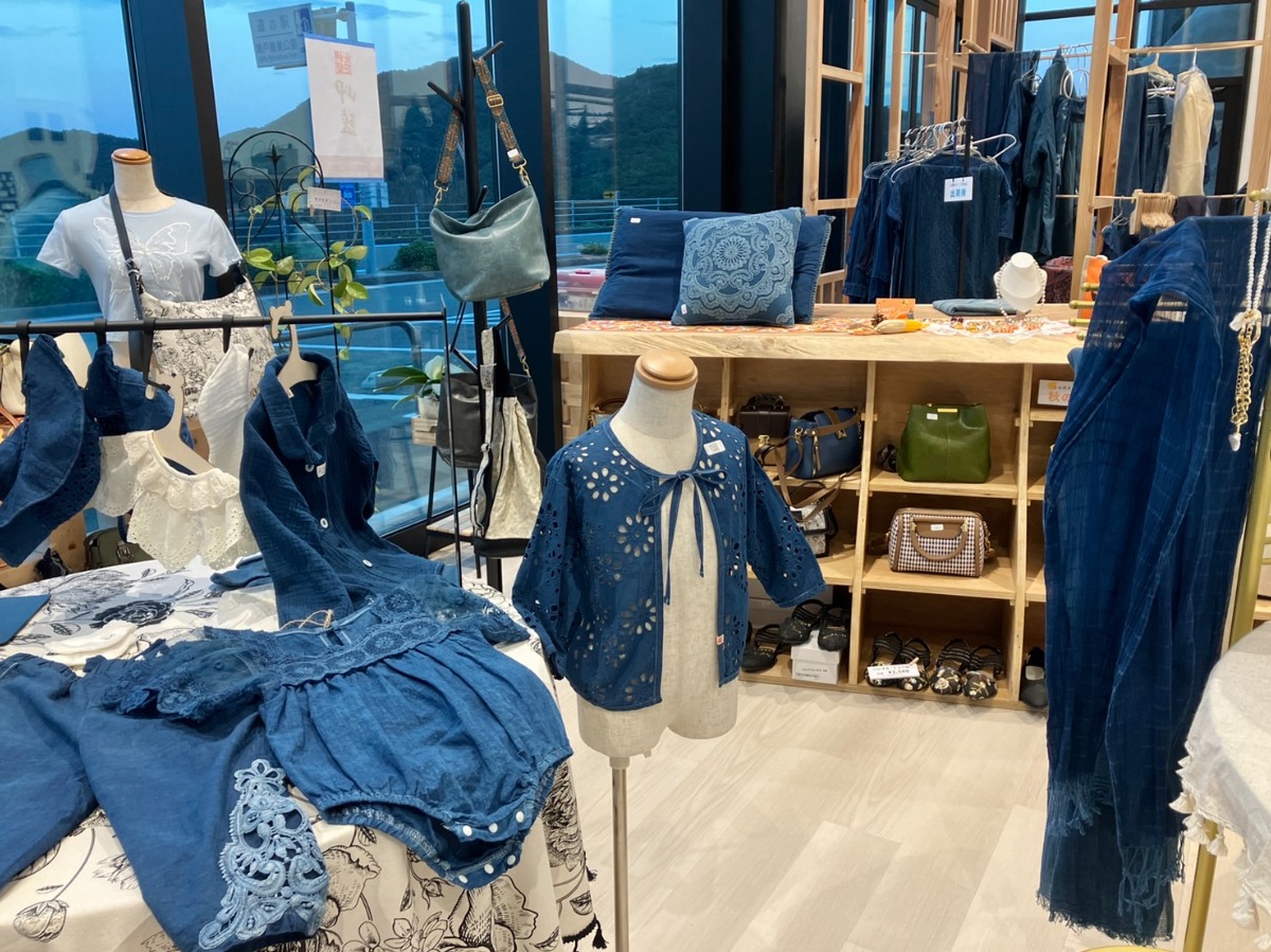 「佐田岬半島ミュージアム1階」にオープンした藍染めの日用品販売や藍染体験などを行う店。持参した衣類や店内で選んだ白のTシャツやワンピースを藍染めしてもらえるサービスが大人気。また四季を感じる物販コーナーでは大自然を感じさせるアクセサリーやバッグなどが揃っています。