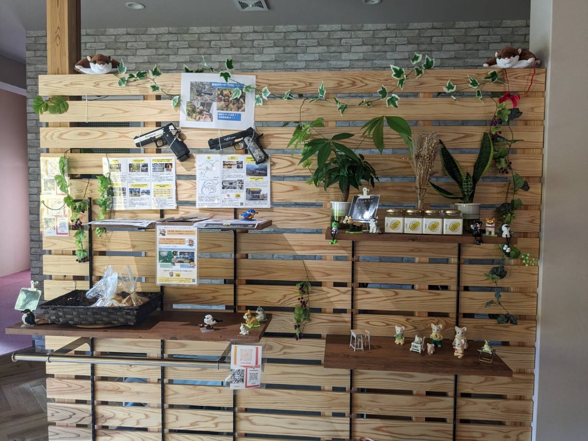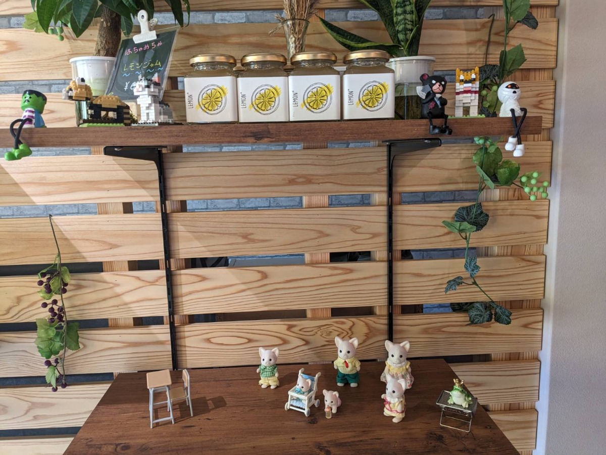 店内には子どもにも喜んでもらえるよう、各所にシルバニアファミリーなどのオブジェが飾られています。また緑の植物も配置されていて、ゆっくりとくつろげる空間になっています。