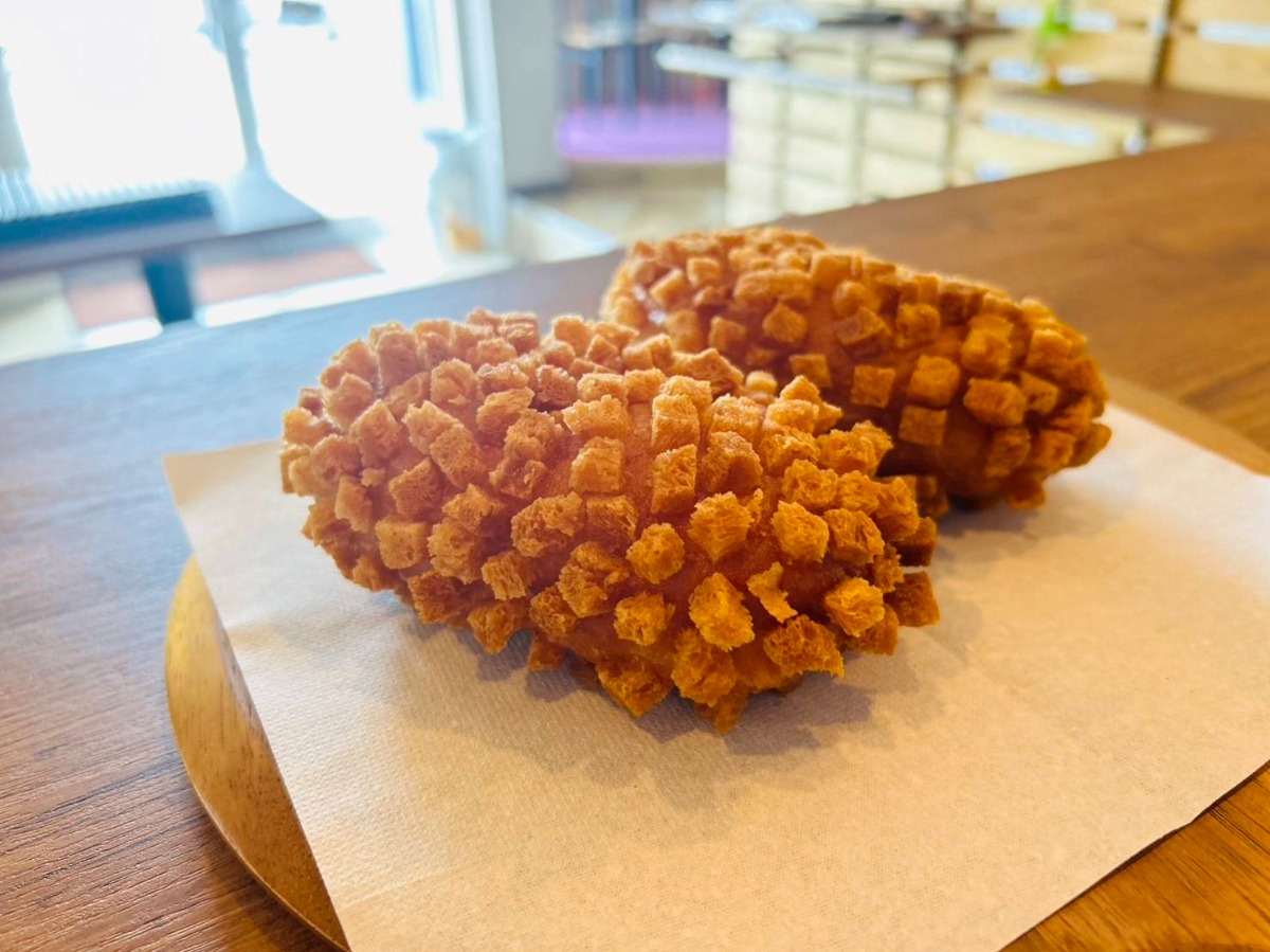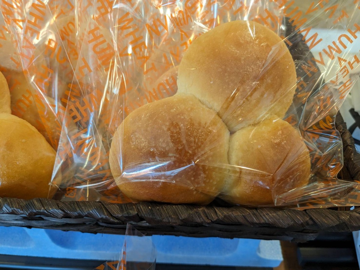 丸い生地が3つ引っ付いている可愛いパンで、1つ1つに餡子が詰まっている商品です。作るとすぐに売り切れる人気の商品で、塩をふって焼いた後バターが塗られていて、もっちりとした食感がクセになります。