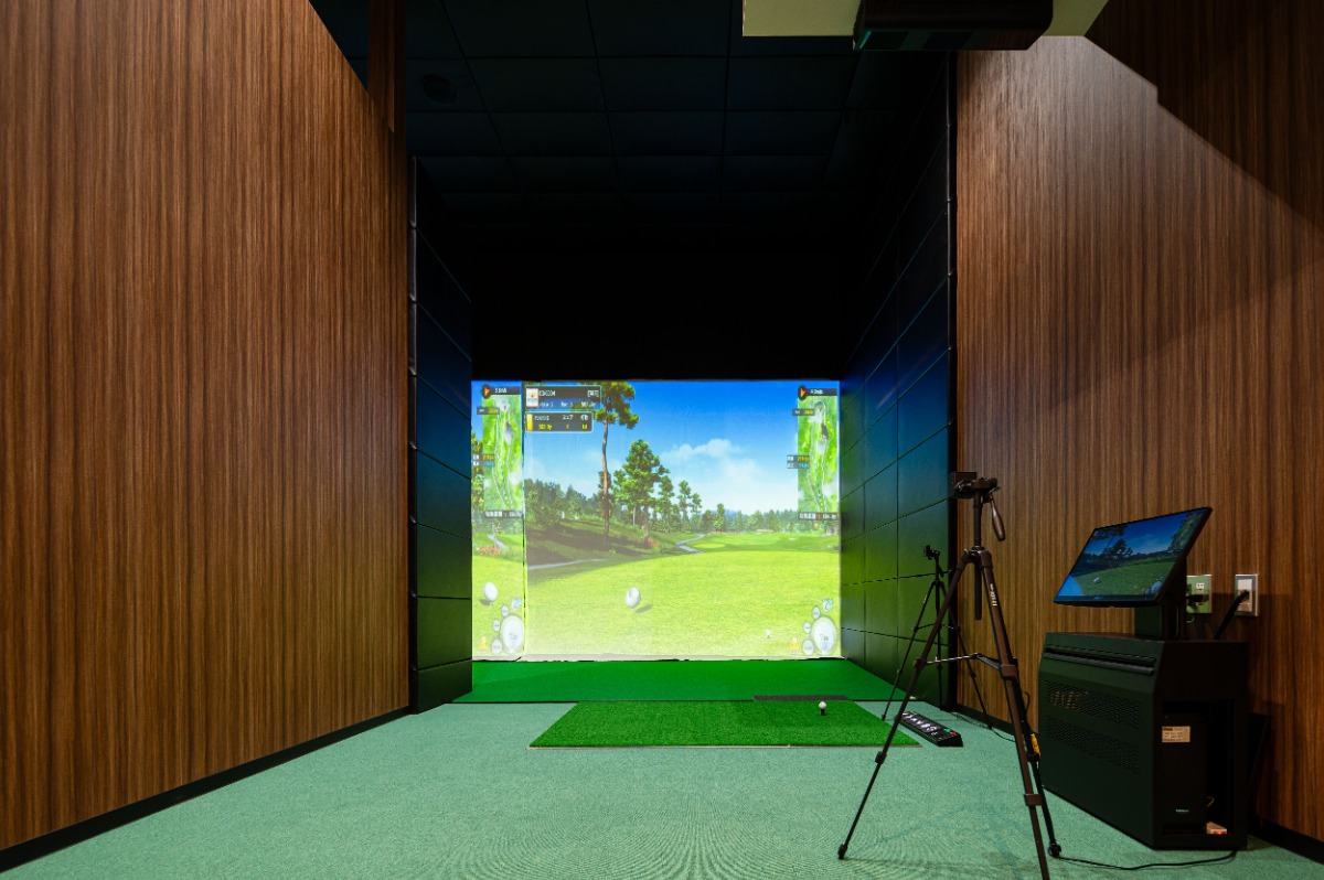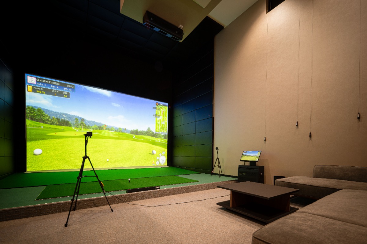 天井が高く開放感のある施設内には、ヘッドやボールのスピードなどが測定できるRANGE(練習)が6打席(内1打席レフティ)、カメラで自分のスイングをチェックできるROUND(半個室)が2打席、大人数(2~6名)で楽しめ、大画面のモニターがあるSIM ROOM(完全個室)1打席が完備されています。