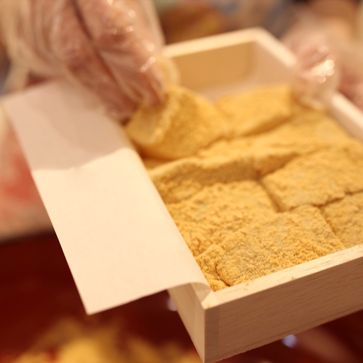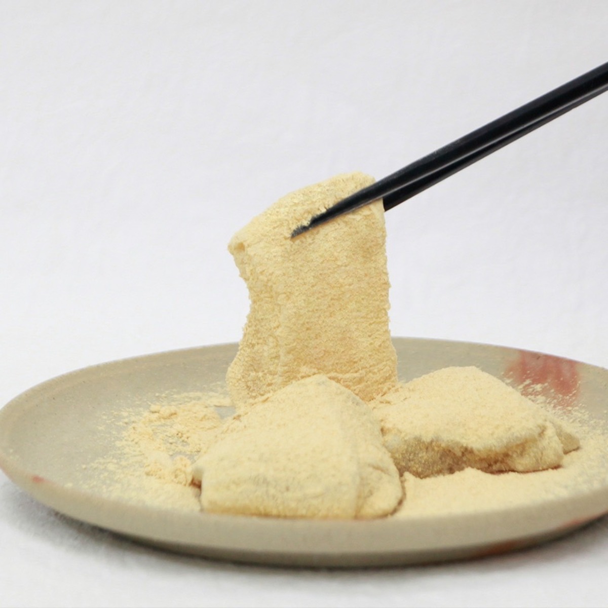 希少な国産本蕨子に鎌倉秘伝の配合を加え、職人の高度な技でもっちりとした食感ととろけるような口溶け、そしてつるんとしたのど越しを実現。子どもやお年寄りの人が喉に詰まることがないように工夫がなされています。また、こだわりのしっかりとした味のきなこが、もちの旨みをさらに引きたてます。