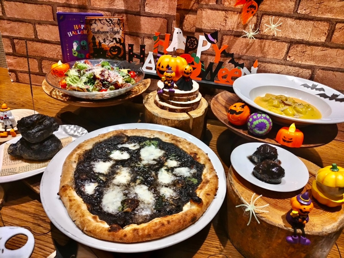 350℃以上の薪窯で作り出すナポリピッツァや本格パスタ、手頃なカジュアルワインから高級ワインまで種類豊富に取り揃えている「サルヴァトーレ クオモ & バール 松山店」。ハロウィンに装飾された店内で、なにやらハロウィン限定メニューが食べられるそうなので紹介しますよ。