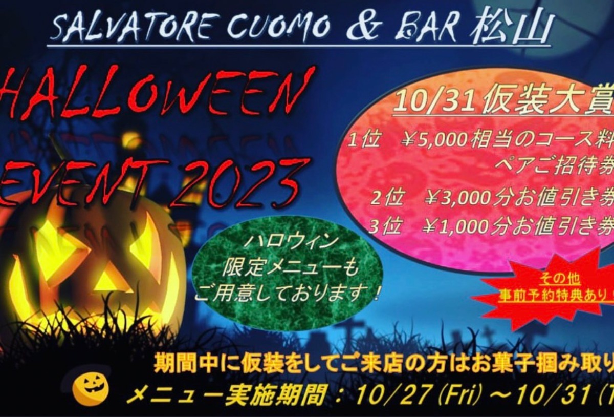 【ハロウィングルメ特集】SALVATORE CUOMO & BAR 松山|10/27~31限定メニューが登場!