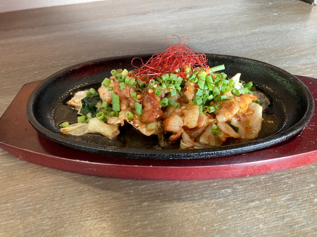 鉄板で焼いた「牛ホルモン焼き」(1,000円)