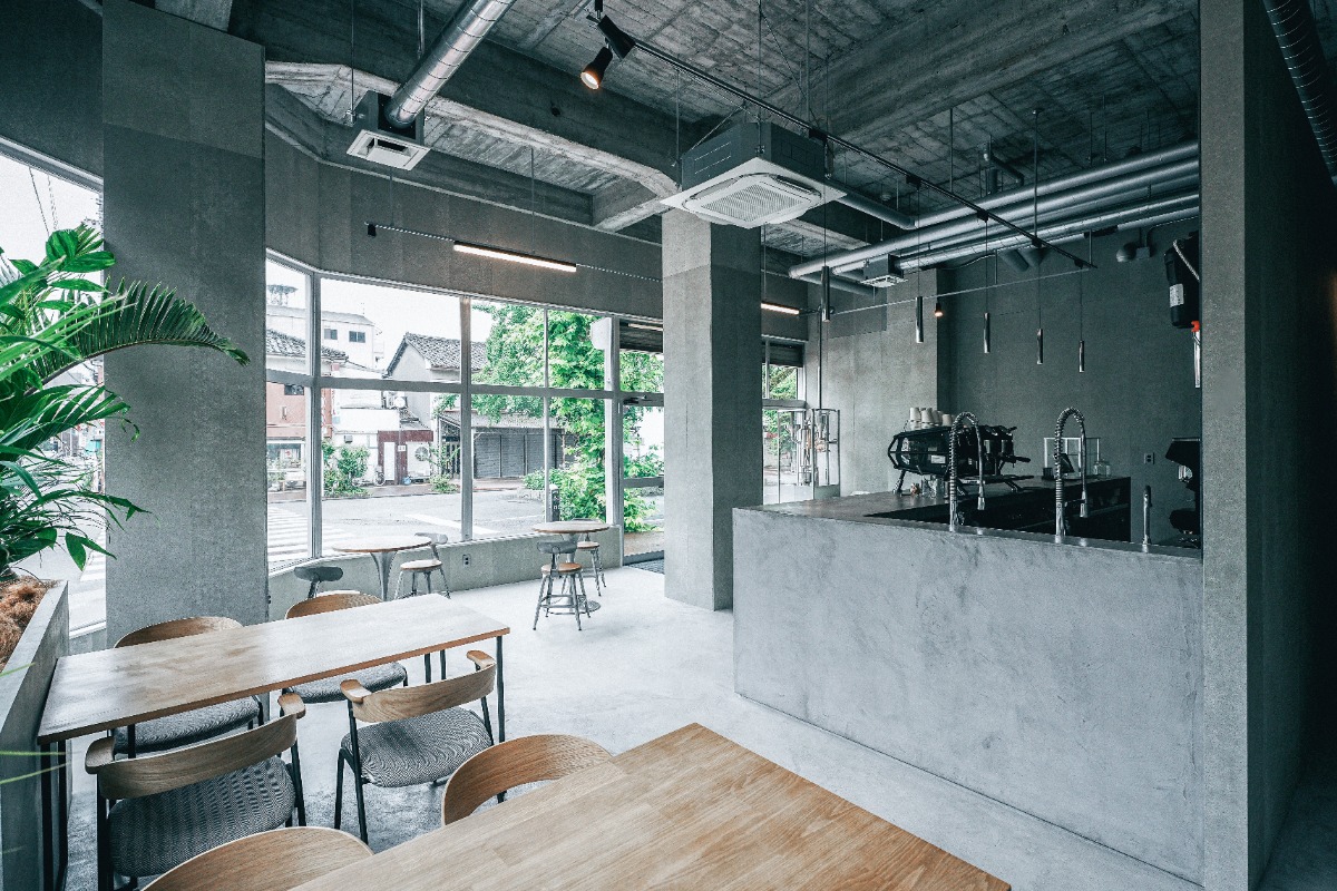 コンクリート調のガラス張りの店内は、スタイリッシュな空間で、思いおもいの時間を過ごすことができます。