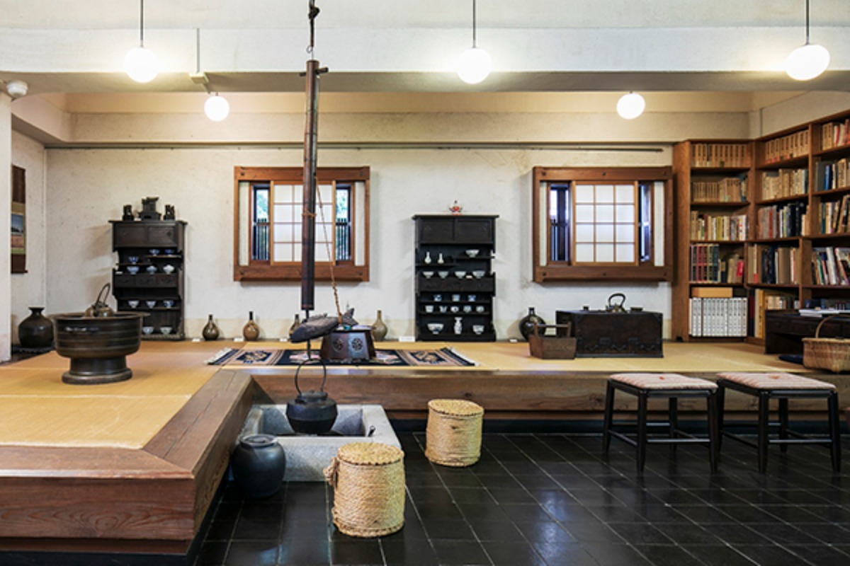 昭和42年(1967)、当時の日本民藝協会長・倉敷レイヨン(現・クラレ)の社長 大原 總一郎の呼びかけに地元の有志や企業が応えるかたちで「東予民藝館」が設立されました。石鎚山系をのぞみ、うちぬきの水が流れる西條藩陣屋跡のお堀に囲まれた一画に佇む建物は、建築家 浦辺鎮太郎による設計です。昭和52年(1977)には名称を「愛媛民藝館」に変更。四国特有のお遍路さんをもてなす文化「お接待」の精神を大切に、その土地の風土や暮らしに根付いた簡素で美しい手仕事の品々を季節やテーマに応じて紹介しています。