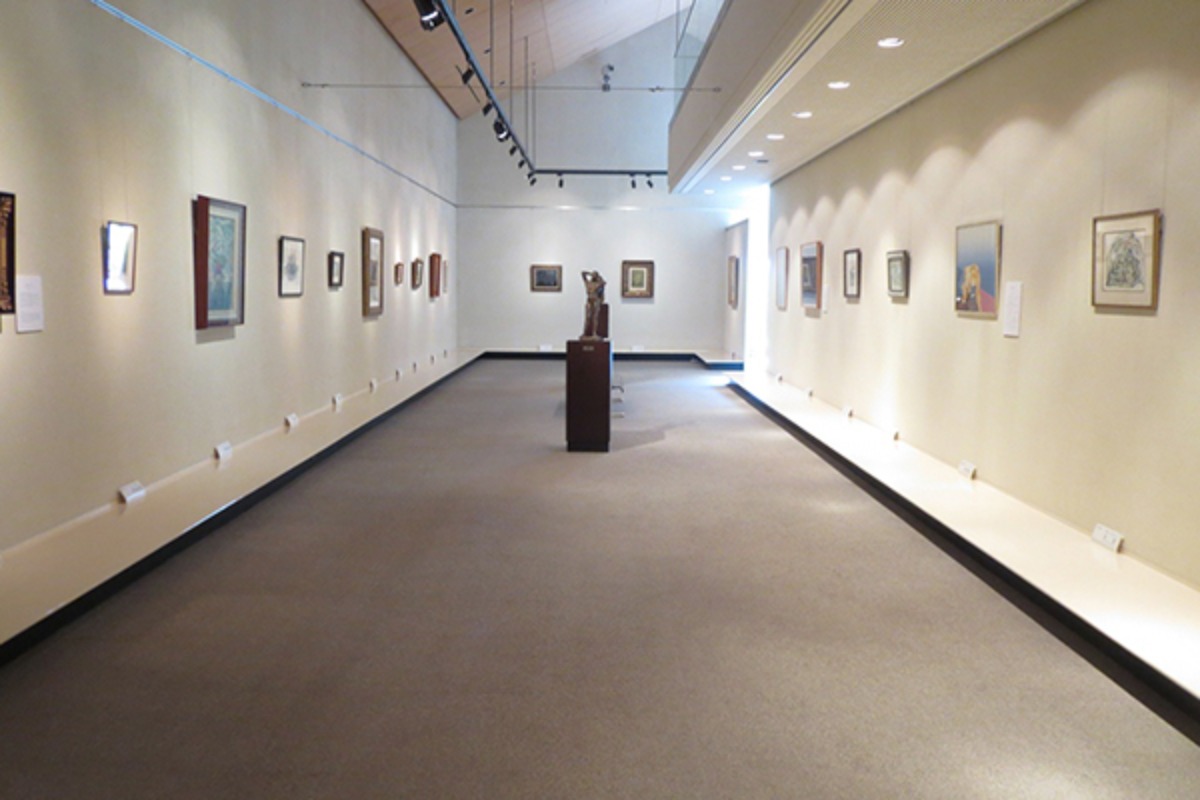 中島千波、田渕俊夫、竹内浩一など、現代の人気日本画家の作品を鑑賞できるコレクション展を中心に、ジャンルに捉われないユニーク企画展、異分野とコラボレーションしたワークショップも開催しており様々な楽しみ方ができます。外観は自然と調和した緑の屋根と清楚な白壁のコントラストが印象的。内観は和紙を張った柔らかく落ち着いた雰囲気の空間で、ゆったりと過ごせます。
