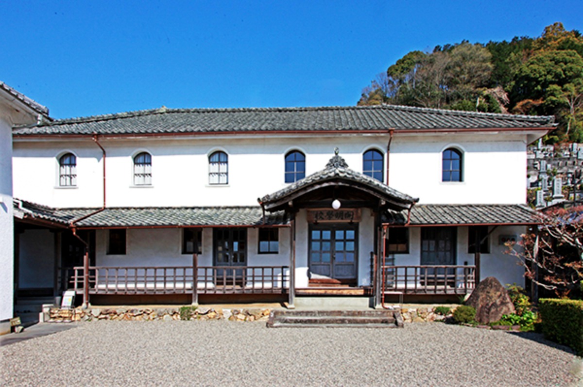 明治15年(1882)に、地元の人々によって建てられた小学校校舎。白壁にアーチ型の窓、1階には外国のベランダのような廊下が設置され擬洋風建築として大変注目を集めた。町の人々の教育に対する熱い思いが受け継がれ、平成9年国の重要文化財に指定された。内部には、昔の教科書などを展示し、懐かしい教室も再現されそこでは楽しい明治の授業が体験できる。(要予約)