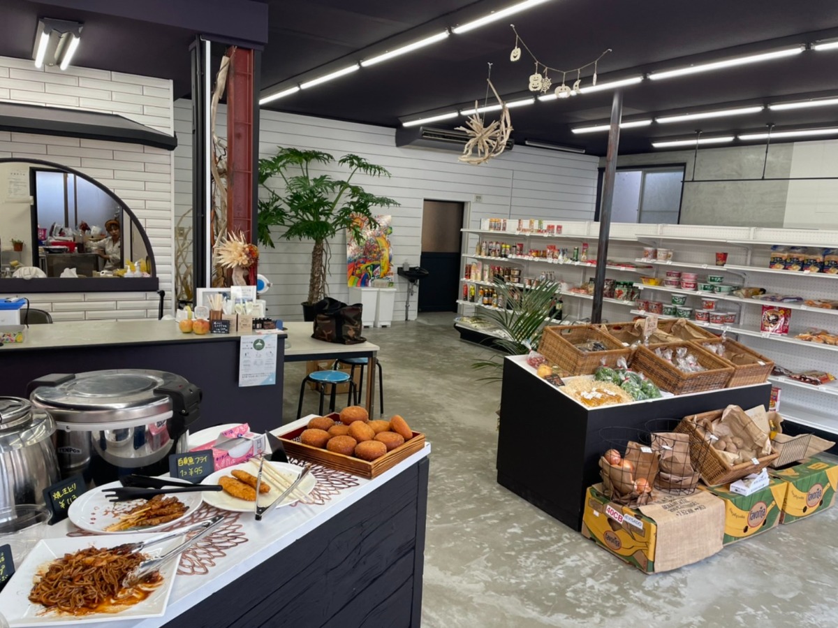 新鮮な島で育った野菜・果物・海鮮物などの食材や、日用品・雑貨販売の他、軽食やコーヒーでくつろげるイートインコーナーがあり、買う物がなくても立ち寄りたくなるスーパー。店名「FRIEND8」には「∞(無限)」に店・島・人がつながって欲しいという願いが込められています。島外からのファンも多い惣菜コーナーの「あんドーナツ」(270円)や素朴で深い味わいのイートインスペースのカレーなど、人気商品も多く揃っています。