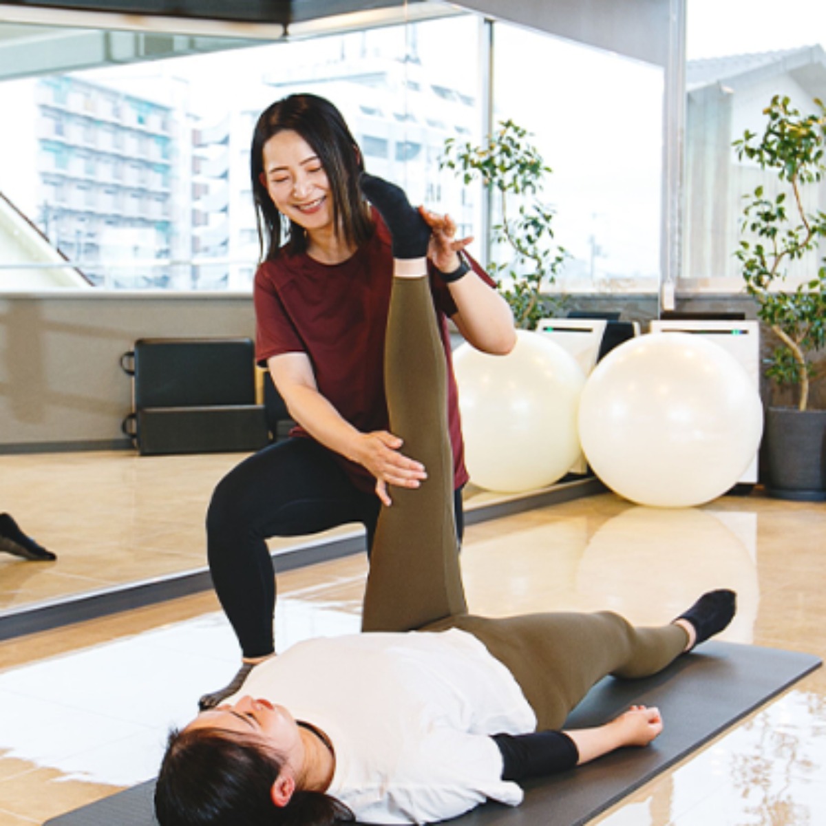 若者から高齢者までの幅広い年代が通うピラティススタジオ。理学・作業療法士の資格を持っているインストラクターが、姿勢はもちろん日常的な痛みやコリをマンツーマンレッスンで改善に導いてくれます。初心者も多く、一人ひとりの状態や目的にあったストレッチを指導してくれ、スタジオにいないときも24時間サポートしてくれるので、気軽に体験してみてください。ピラティスで呼吸を整え、身体を動かしながら、健康的な体づくりをしていきましょう。