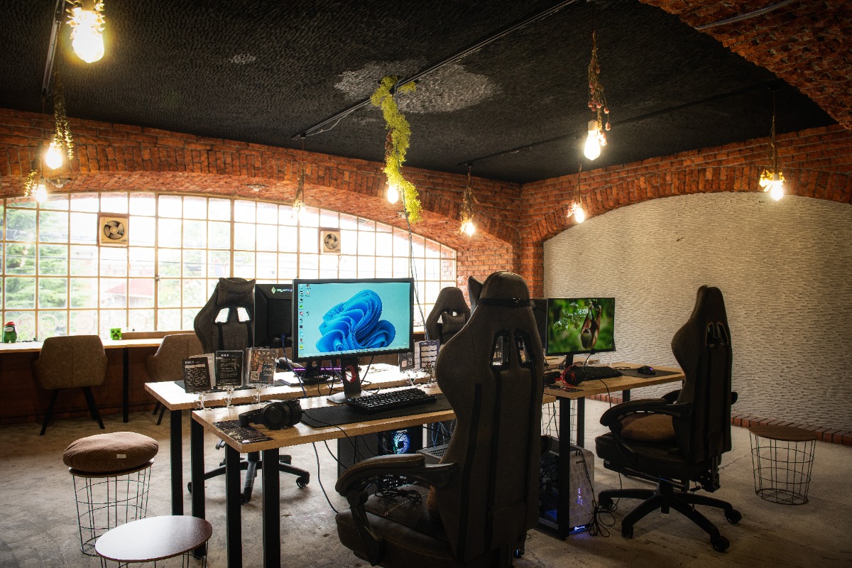 今治初のeスポーツカフェ。店内には4台のパソコンが設置され、4人同時のプレイも可能です。また最新のゲーミングボードも4種あり、一足先に試すこともできます。店自慢の手作り焼き菓子やドリンクもあり、カフェのみの利用も可。ポテトや唐揚げなど軽食もありますよ。