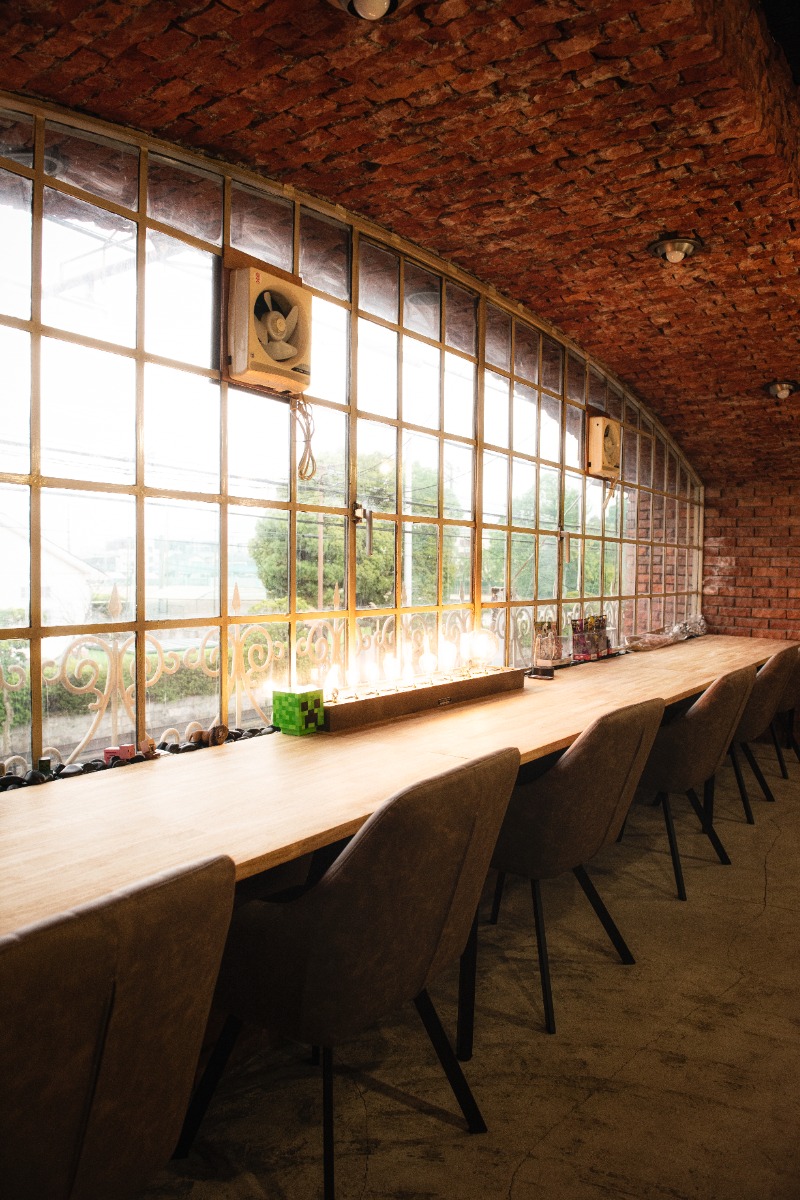 レンガ調の建物はレトロで落ち着く空間。入口には「PORTE」と書かれた可愛らしい看板があり、すぐ横の階段を上がって2階がカフェになっています。カフェだけの利用の人は、ぜひ眺めの良い窓辺の席を! おひとり様も大歓迎!