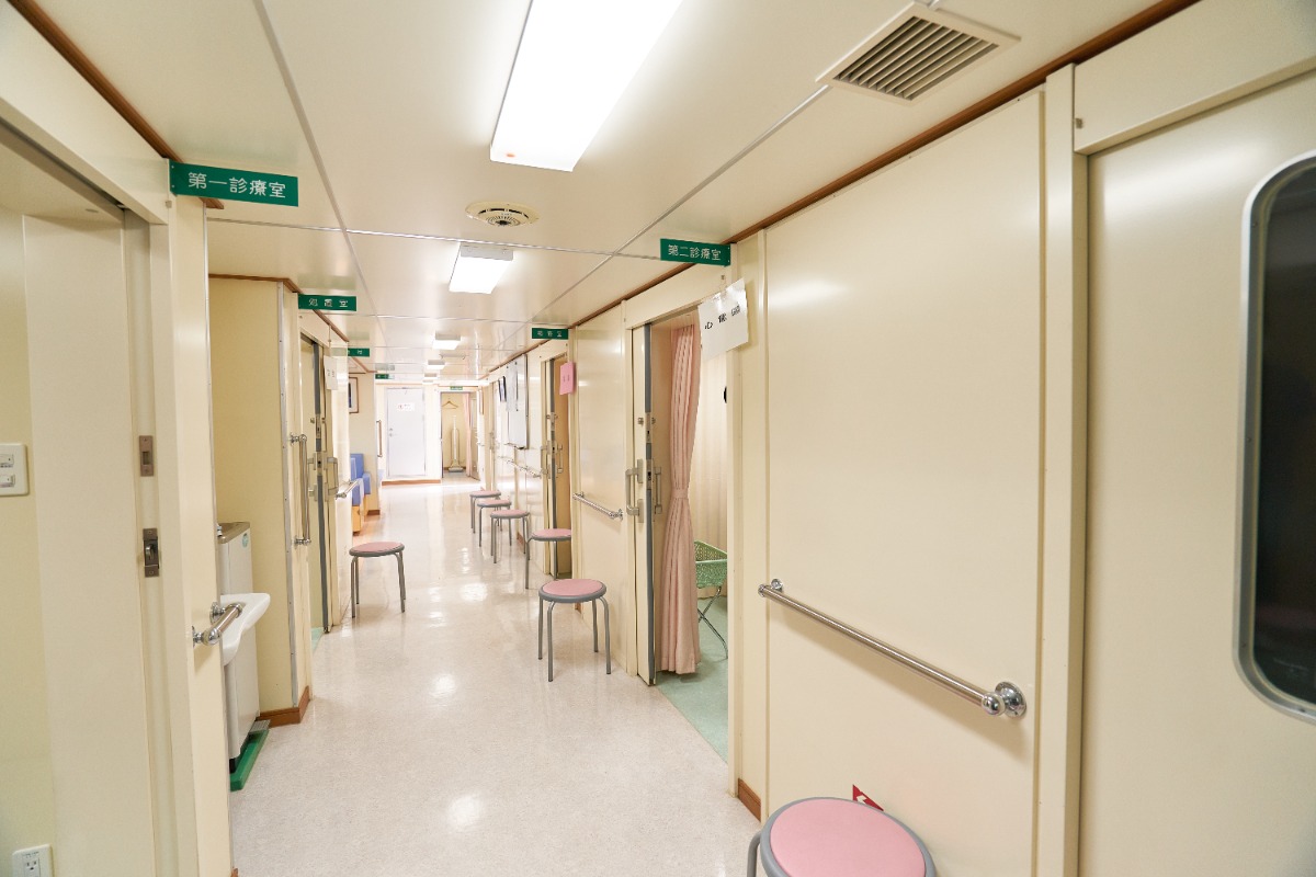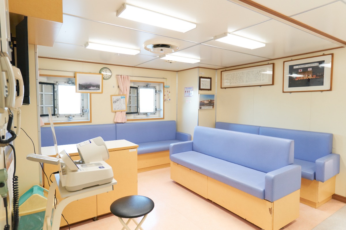 船内には待機室や診察室のみならず、検査室や処置室も設けられている。採血や心電図測定も可能な上、レントゲンやマンモグラフィ検査、骨密度測定に眼底検査も船内で実施可能という、非常に充実した診療体制だ。離島住民の抱える様々な病状や複合的な症状すべてに対応するべく、こうして揃えられた診療環境。これらは当たり前のものではなく、長年済生丸が離島医療に携わり続けた実績の上に成立するものともなっている。