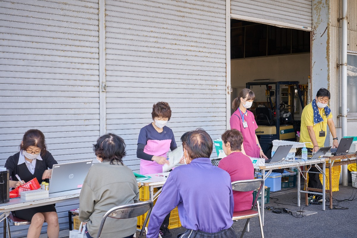 訪れた釣島は人口わずか約30人の島だ。過去には分校となる小学校も存在していたが、現在は地図上に“休校”の文字が記されている。住民が一人一台、車ではなく船を持って暮らす島。ここで暮らす人の多くは柑橘栽培、あるいは漁業で生計を立てる。船の到着にあわせ少しずつ島民が集まる中、港の目と鼻の先に屋外受付を設置し、この日の診療が始まった。