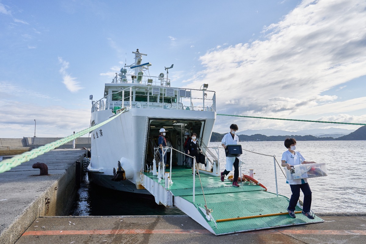 船が1年で訪れる場所は60島1地区(80カ所)。もちろん愛媛県が有する約20の離島もそのうちに含まれる。月内数日間の停泊を除いて船はほぼ毎日運航しており、数十分~数時間かけての航海移動も日常茶飯事だ。島への停泊期間も規模によって様々。島民わずか数十人の島では午前中のみの停泊で診療が終わることもあれば、数千人規模の住民がいる島では数日間に渡って診療を行うこともある。
