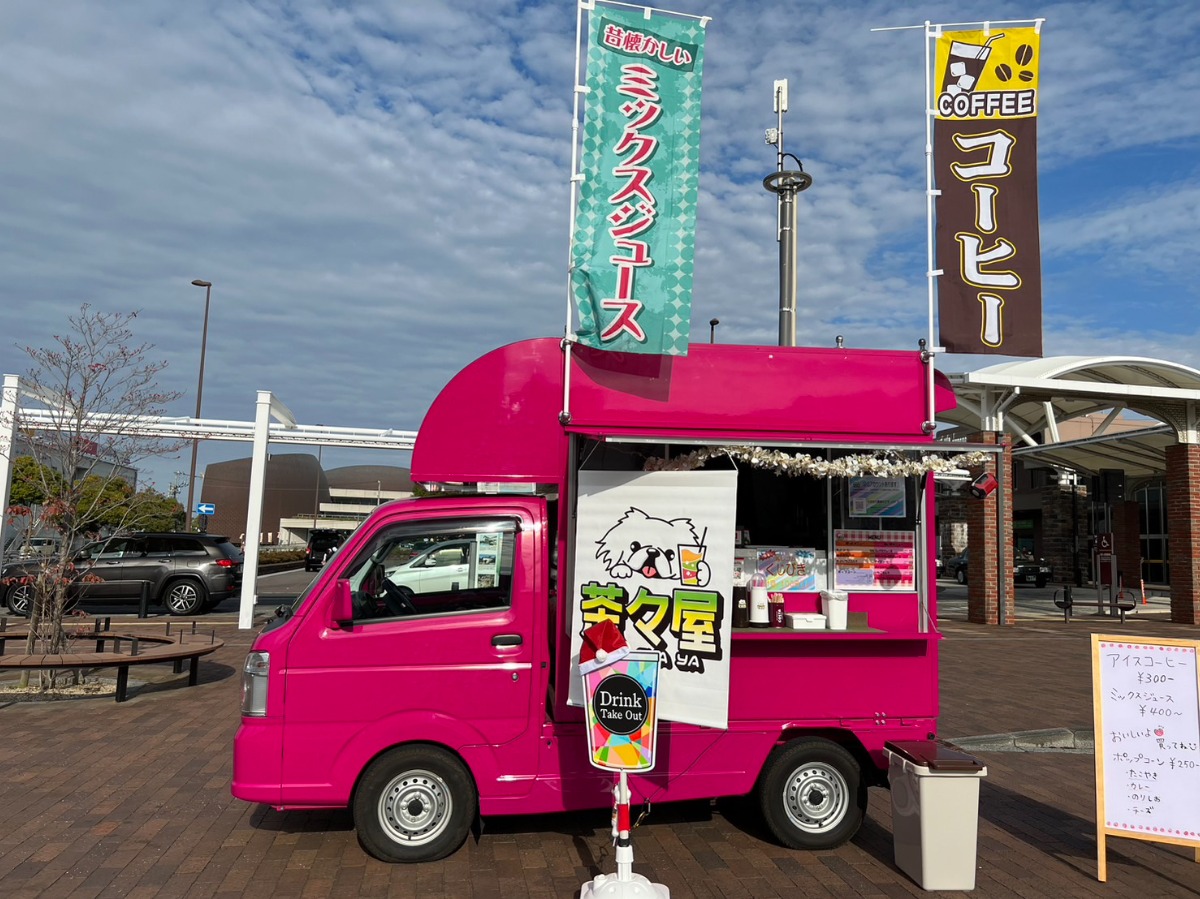 気さくなご夫婦が営む、目立つローズ色のキッチンカー。素朴な味のミックスジュースや、飲みやすさ抜群の野菜ミックスジュースなどが楽しめます。厳選した豆を使用したコーヒーの他、たこ焼き味やのりしお味などレアな味のポップコーンも人気です。