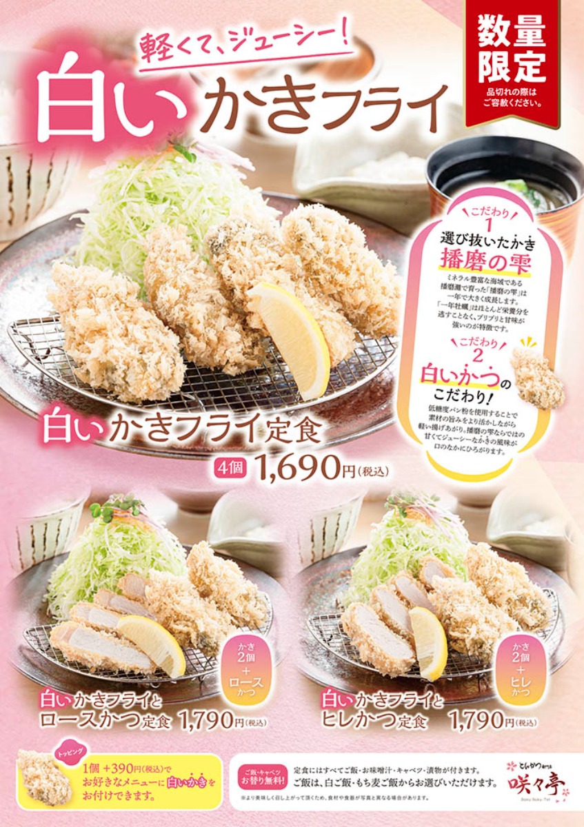 とんかつ専門店「咲々亭」の「かきフライ」が「白いかきフライ」となって新登場!