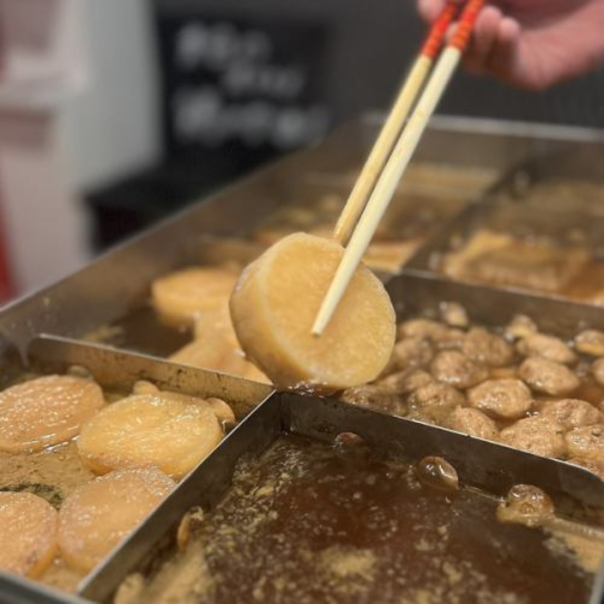 時間をかけてコトコト煮込んだ「SPIRITAS」のおでん(1本160円)は、1日かけて作りあげるダシがポイント。おでんの種から染み出る素材の旨味がプラスされ、全て飲み干してしまうほどの美味しさです。そして、定番の具材以外に、手羽先なども入っていてバラエティ豊富な内容になっています。