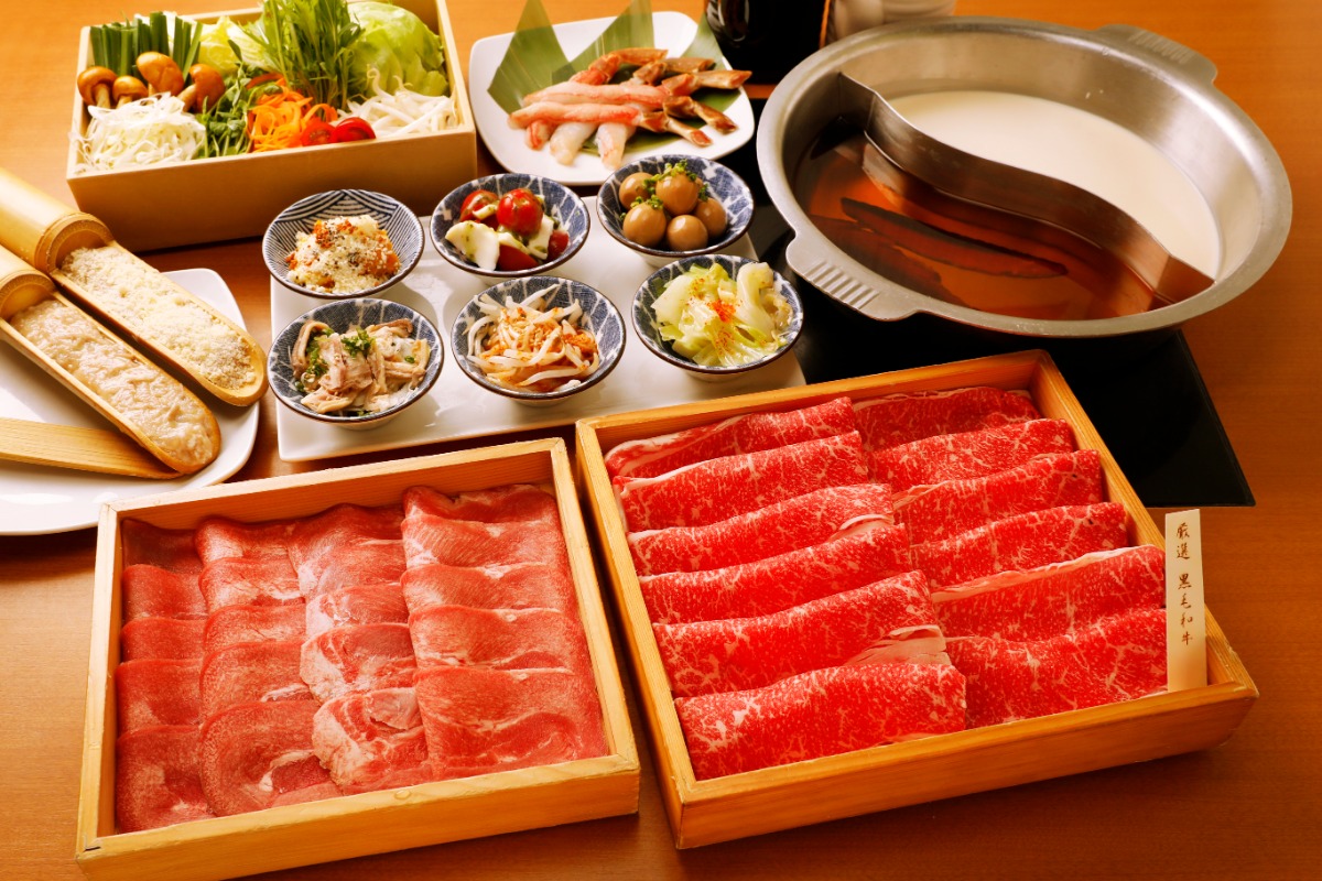 「豚しゃぶコース」(3,278円)から「霜降り黒毛和牛コース」(6,578円)まで、予算に合わせて6種類のコースから選択可能です。