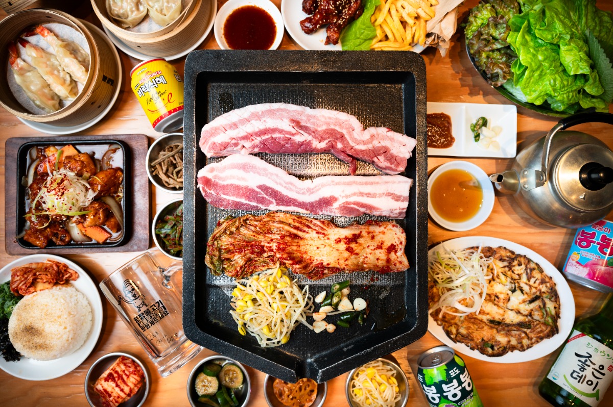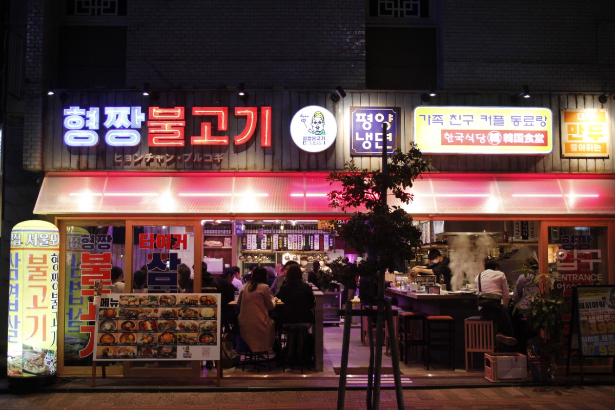 本場韓国の屋台のような店内と「アニョハセヨ!」と活気のある挨拶で、店内に入るやいなや旅行気分になれる「ヒョンチャンプルコギ 松山店」。