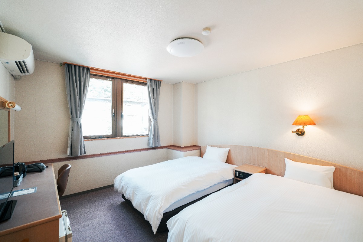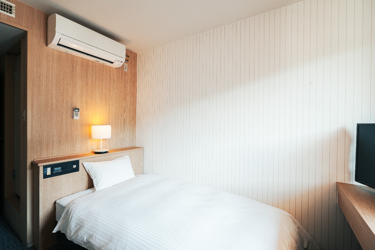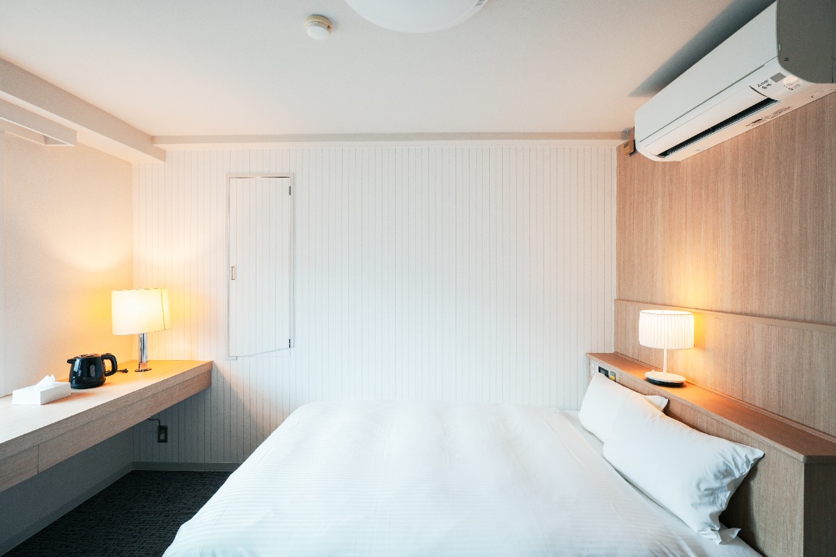 白木調でモダンなデザインの部屋に大変身。上質なベッドや高級感あふれる備品なども完備され、快適な滞在時間を過ごすことができます。シングルルーム・セミダブルルーム・ダブルルーム・ツインルームがあり、子ども連れやご年配の人にも優しい和室があるのも魅力です。甘く爽やかなみかんの香りがする館内ではリラックス効果を得ることもできます。