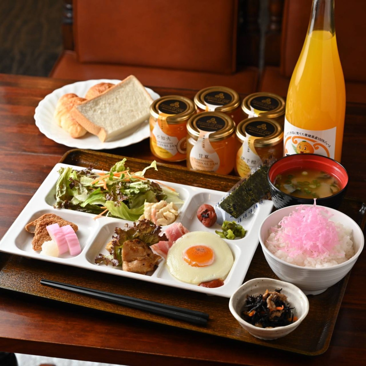 地元の食材や野菜などを使用した料理をビュッフェ形式で日替わりで提供。八幡浜の生産農家さんが作ったジャムなどこだわりの多い内容になっています。