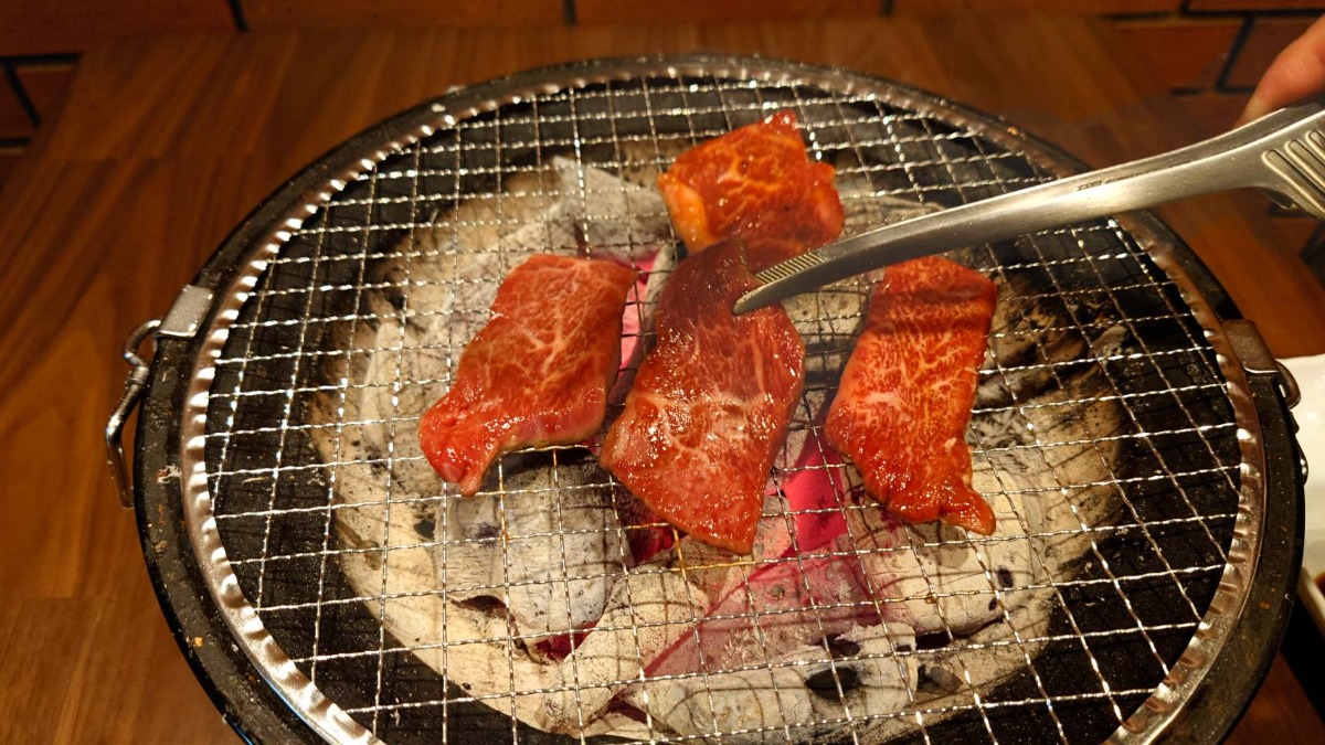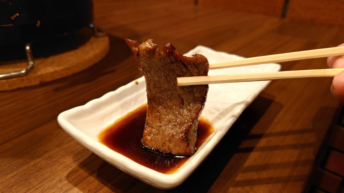 提供される肉は、事前に生姜が効いた醤油ベースのタレに付けてあり、炭火で焼いた後もその特製のタレにつけて味わう。そのタレにニンニクやネギなどを入れて味変を楽しむのも◎。