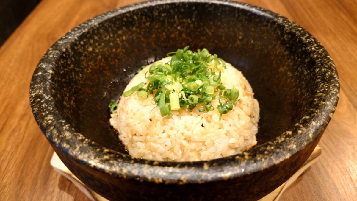 ごはん系メニューの中でまずおすすめは、「石焼きガーリックライス」(380円)。ニンニクの風味がさらに食欲をそそり、何杯でもお替りをしてしまうほどの美味しさです。カリカリのおこげがさらに◎。